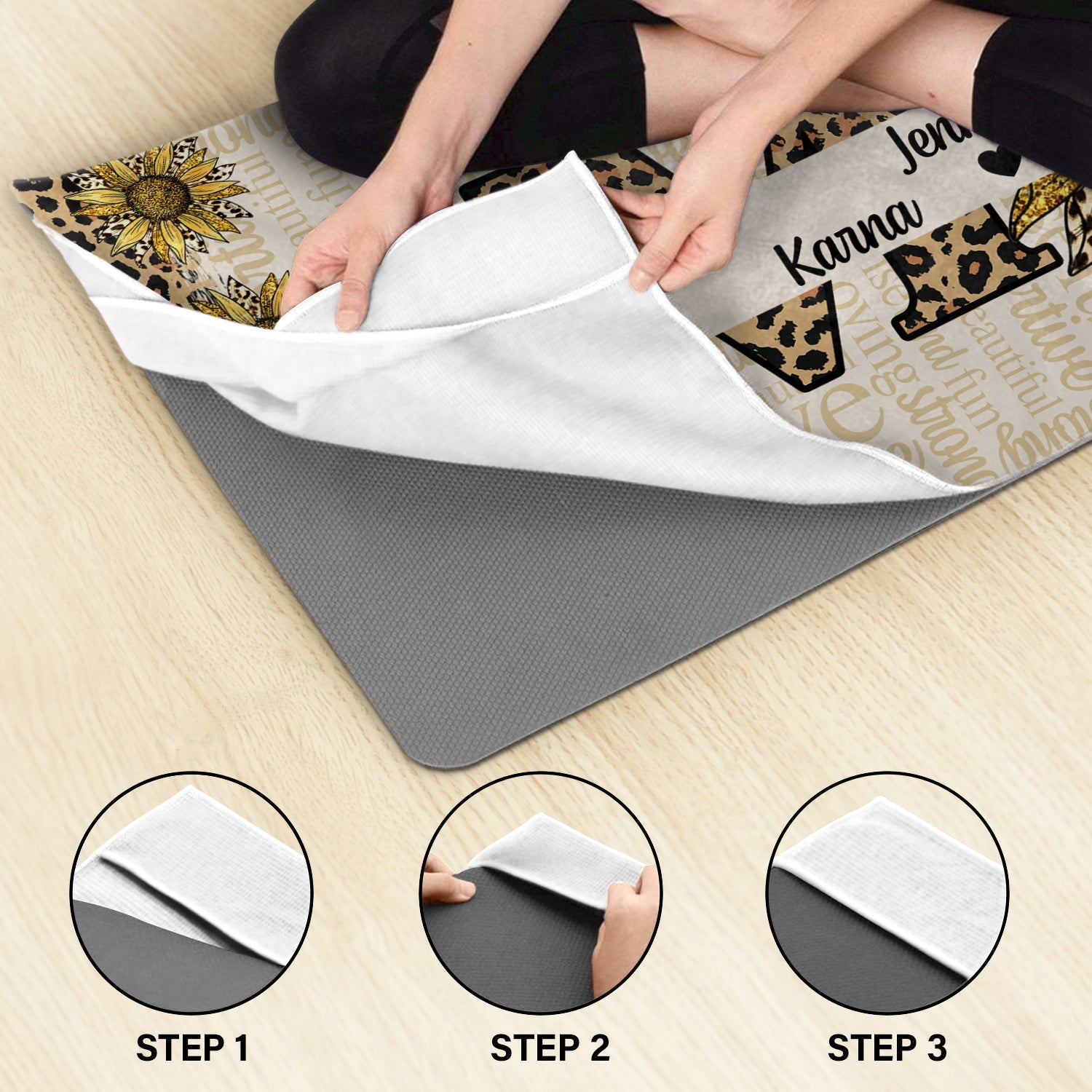 Personalized 'MOM: Strong & Kind' Sunflower Leopard Yoga Towel