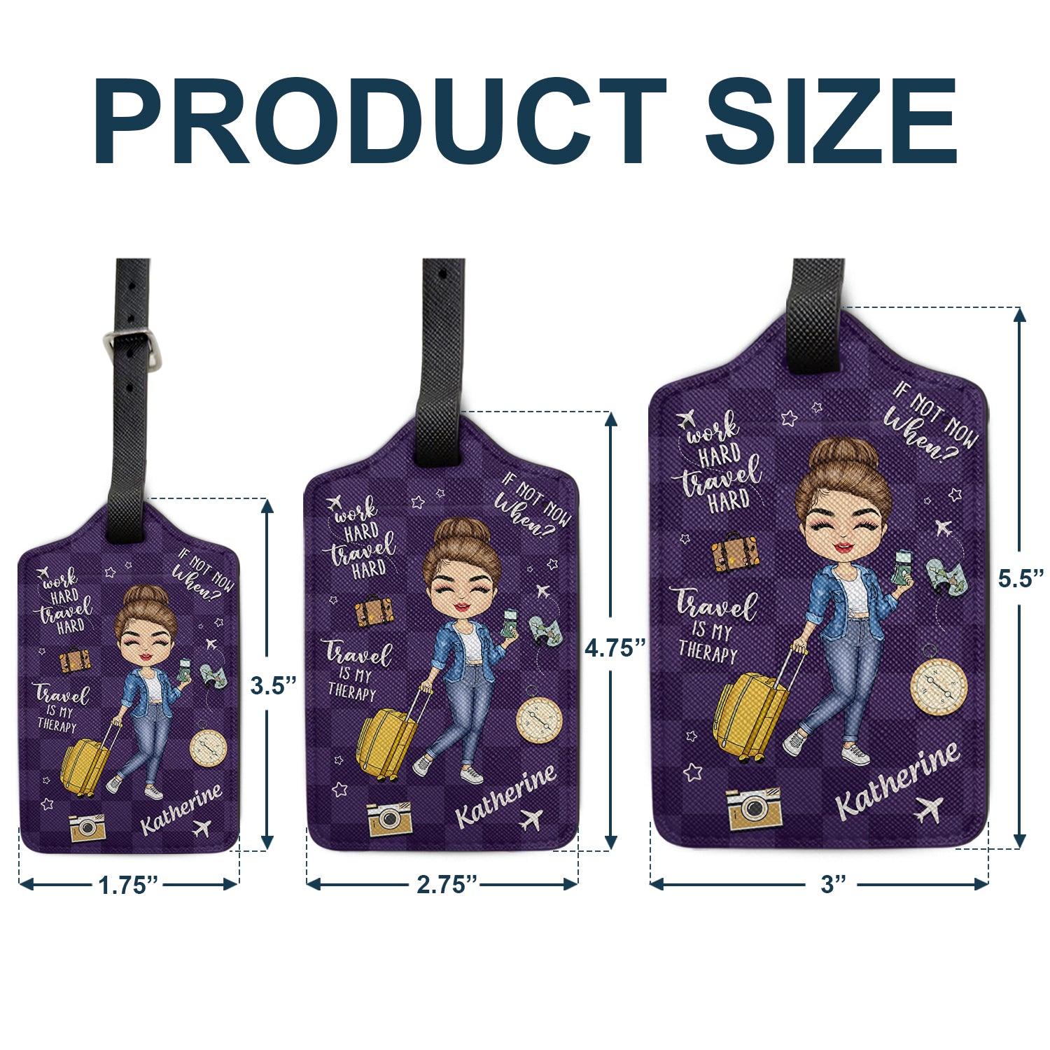 For those who truly believe, "Work hard travel hard. Travel is my therapy. If not now when?" – this luggage tag is more than an accessory; it's a declaration. Crafted for the spirited adventurer, it speaks directly to the soul of every traveler, reminding you to chase your dreams and explore the world, whether for yourself or as a thoughtful gift for a beloved friend or family member.