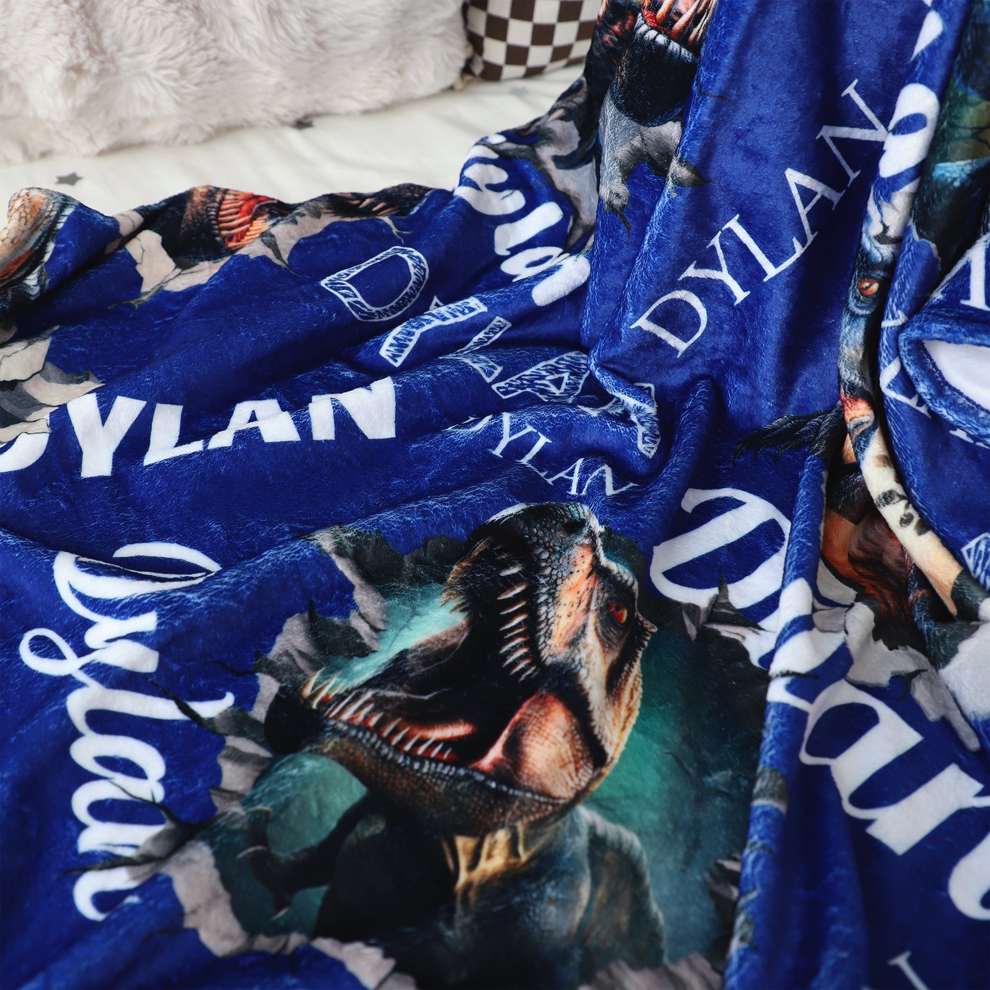 Custom Jurassic Dinosaur Name Blanket for Kids - Perfect Personalized Gift