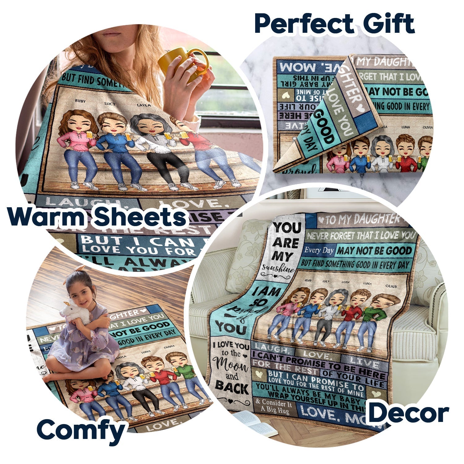 Whether you’re snuggling with it as a reminder of your special bond, displaying it in your home as a tribute to your perfect traditions, or giving it as a thoughtful mother-daughter gift—this blanket is your perfect comfort companion. It’s warm, it’s personal, and it reminds everyone:“You’re loved, you’re cherished, and totally blessed—because mother-daughter love is the greatest treasure of all.”