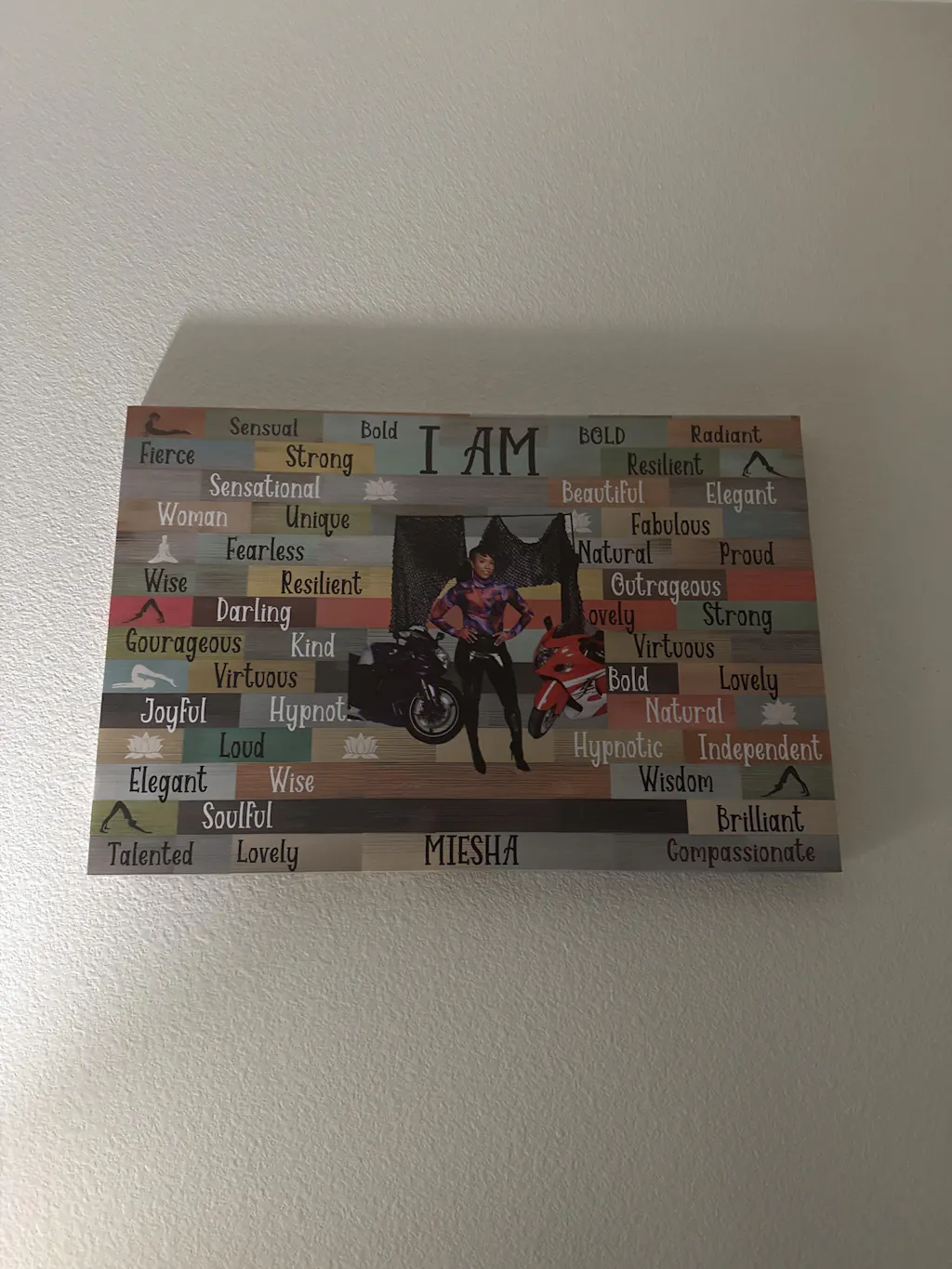 Perfect for my home! The yoga pose, empowering words, and personalized name make it warm and inviting.