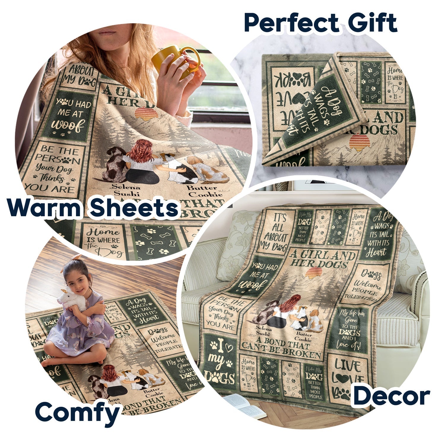Imagine this stunning personalized blanket gracing your home—featuring a rustic, nature - inspired background that adds a warm, cozy feel, with the girl and her dog sitting together and a sunset in the background, setting the tone for a celebration of love and companionship. The phrase “A GIRL AND HER DOG” and the accompanying text about the bond between a girl and her dog in a mix of bold and cursive fonts add a powerful touch, emphasizing the strength of your bond. The names “Jessica” and “Peanut” create a personal connection, making it uniquely yours. The ability to customize the girl’s and dog’s names allows for deep personalization, reflecting your unique story.