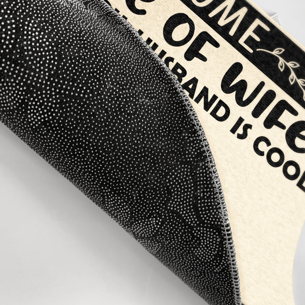 Imagine this stunning personalized doormat gracing your doorstep—featuring a warm, textured background that adds a welcoming feel, with the family of four, setting the tone for a celebration of family humor and unity. The bold text “WELCOME”, “Beware OF WIFe”, “KIDS ARE SHADY. HUSBAND IS COOL”, and the family name “The Johnsons” in a mix of humorous and elegant fonts add a powerful touch, emphasizing the strength of your family bond. The ability to customize the family members’ names and the family name allows for deep personalization, reflecting your unique family dynamics.