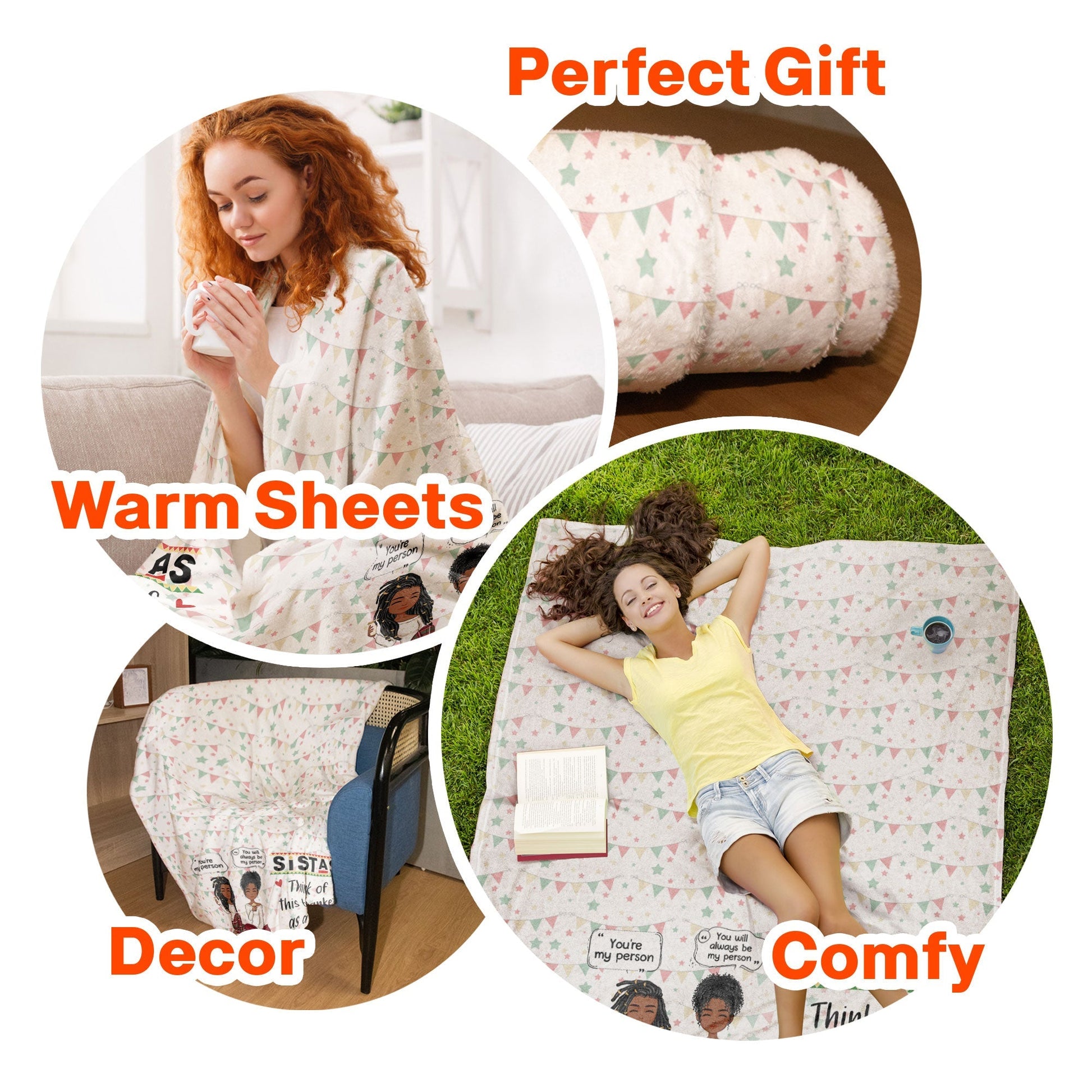 From the personalized sisters’ names that make it uniquely yours to the cozy design that celebrates your sisterhood, while the combination of sisterhood - focused imagery and personal value creates a piece that is both visually striking and emotionally resonant. It’s more than just a blanket; it’s a celebration of your beautiful sisterhood, a daily reminder of the bond that binds you, and a beautiful tribute to the memories you’ve shared—because when it comes to sisterhood and comfort, there’s nothing more precious than honoring the bond that makes your story uniquely yours, captured in the timeless beauty of warmth and eternal inspiration.